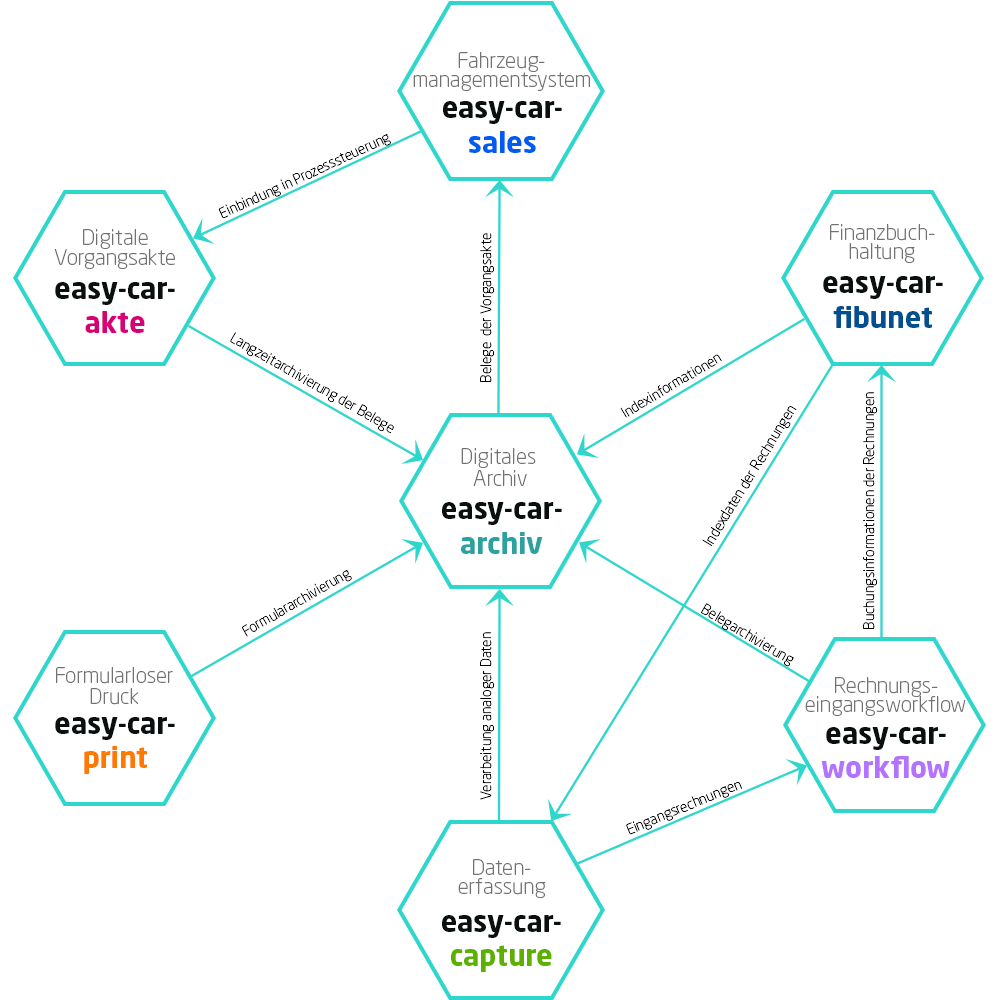 Unsere easy-car-solution Lösungsfamile richtet sich nach den Bedürfnissen Ihres Autohauses und verknüpft bestehende Systeme miteinander.